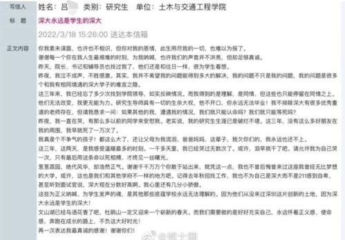 最近深圳研究生爆料事件可是闹得沸沸扬扬的,咱们得好好聊聊这事儿。你有没有听说,一位深圳的研究生同学在网络上曝光了一所知名高校的种种“黑幕”?这事儿一出,网友们都炸开了锅,各种猜测和讨论层出不穷。今天,我就来给你详细扒一扒这个事件,让你全面了解背后的真相。